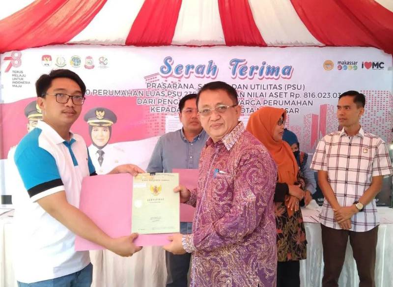 Pada proses serah terima PSU seluas 235.969 meter persegi berlangsung di perumahan Anging Mammiri Residence Aeropala Kamis, 31 Agustus 2023.