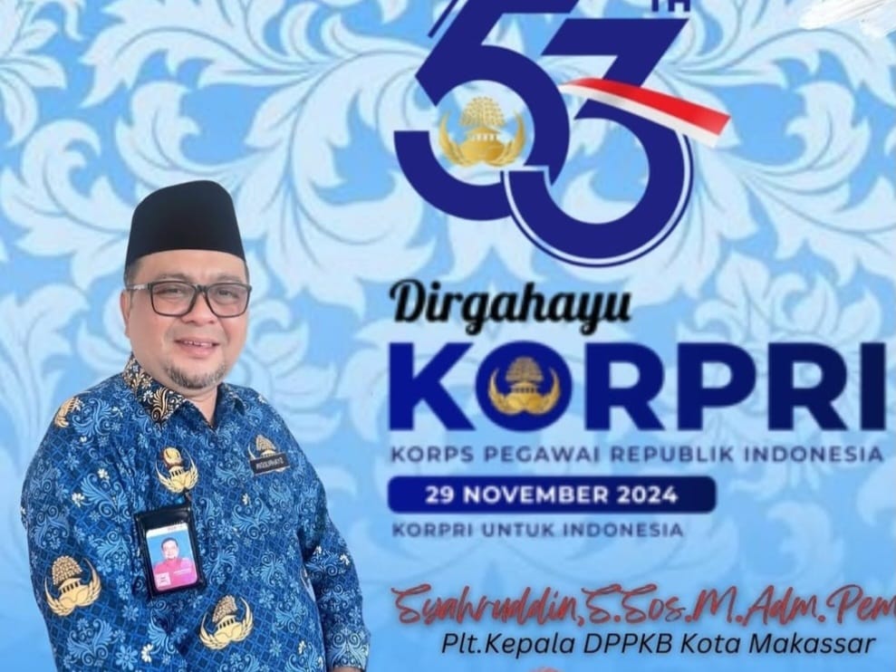 BERITAINEWS MAKASSAR — Pemerintah Kota Makassar, melalui Pelaksana Tugas (Plt) Kepala Dinas Pengendalian Penduduk dan Keluarga Berencana (DPPKB) Kota Makassar Syahruddin S. Sos, mengucapkan selamat Hari Ulang Tahun (HUT) Korps Pegawai Republik Indonesia (Korpri) yang ke-53. Pada Jumat, 29 November 2024.