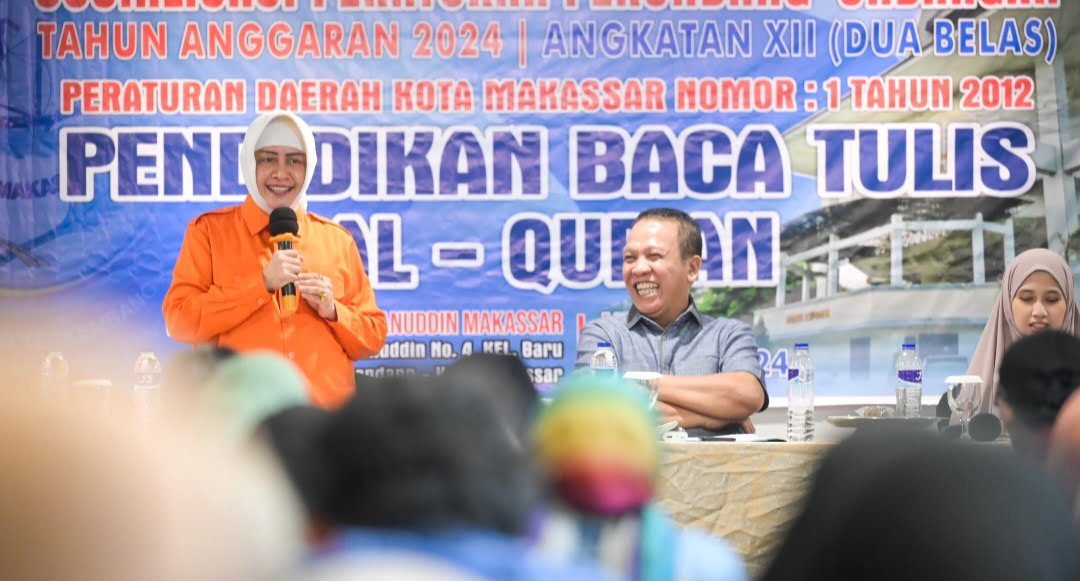 BERITAiNEWS MAKASSAR — Ketua TP PKK Kota Makassar Indira Yusuf Ismail menyampaikan Sosialisasi Peraturan Daerah Kota Makassar tentang Pendidikan Baca Tulis Al-Quran, di Hotel Wizh Prime Hasanuddin, Kamis (23/05/2024).