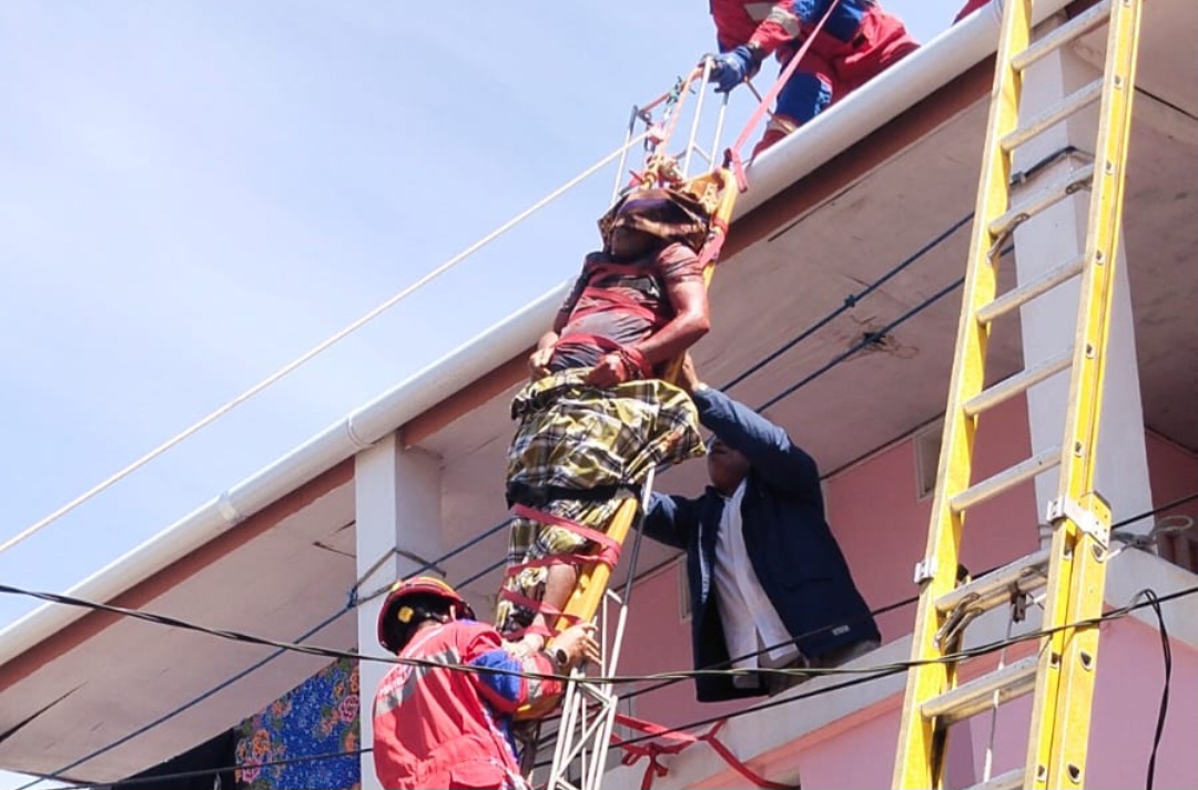 Sekitar pukul 09.50 Wita, personel Polsek Tamalanrea bersama petugas Pemadam Kebakaran melakukan evakuasi korban dari lantai dua pondok dengan menggunakan tangga dan tali. Lima menit berselang, korban kemudian dibawa ke Rumah Sakit Daya Makassar menggunakan kendaraan kepolisian atas permintaan pihak keluarga untuk mendapatkan penanganan medis lebih lanjut.