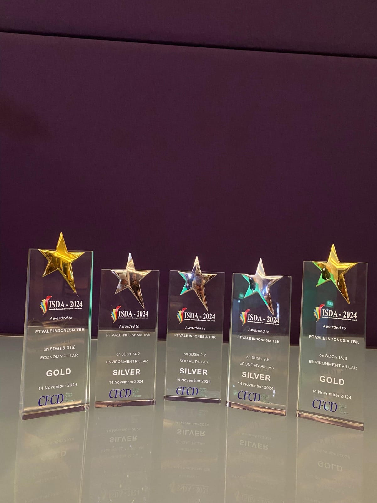 Apresiasi yang diperoleh PT Vale dengan diraihnya *lima penghargaan Indonesian SDGs Award (ISDA)*, yakni :