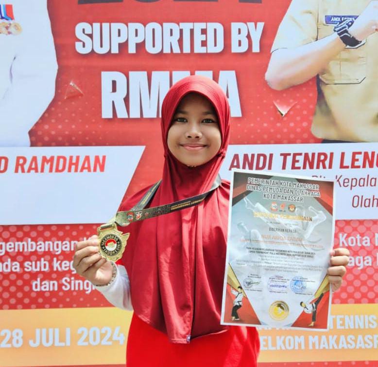 BERITAINEWS, Makassar : 3 Atlet SD Islam Athirah 2 Makassar berhasil meraih juara pada Kejuaraan Taekwondo Kota Makassar 2024 Jumat-Ahad (26-28/7/2024) bertempat dilapangan Tennis Indoor Telkom Makassar mulai pukul 08.00-Selesai. Kegiatan ini diselenggarakan oleh Dinas Pemuda dan Olahraga (Dispora) kota Makassar bekerja sama dengan RMMA.
