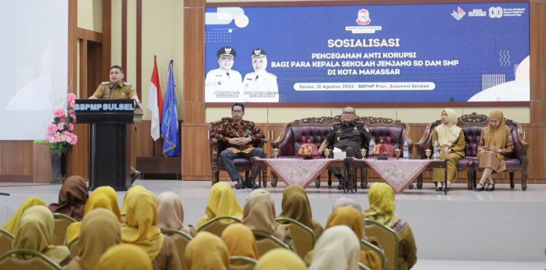 Hal ini disampaikan saat membuka kegiatan Sosialisasi Edukasi Anti-Korupsi bagi 400 kepala sekolah SD dan SMP se-Kota Makassar, di Aula BBPMP Sulsel, Selasa (12/8/2025).