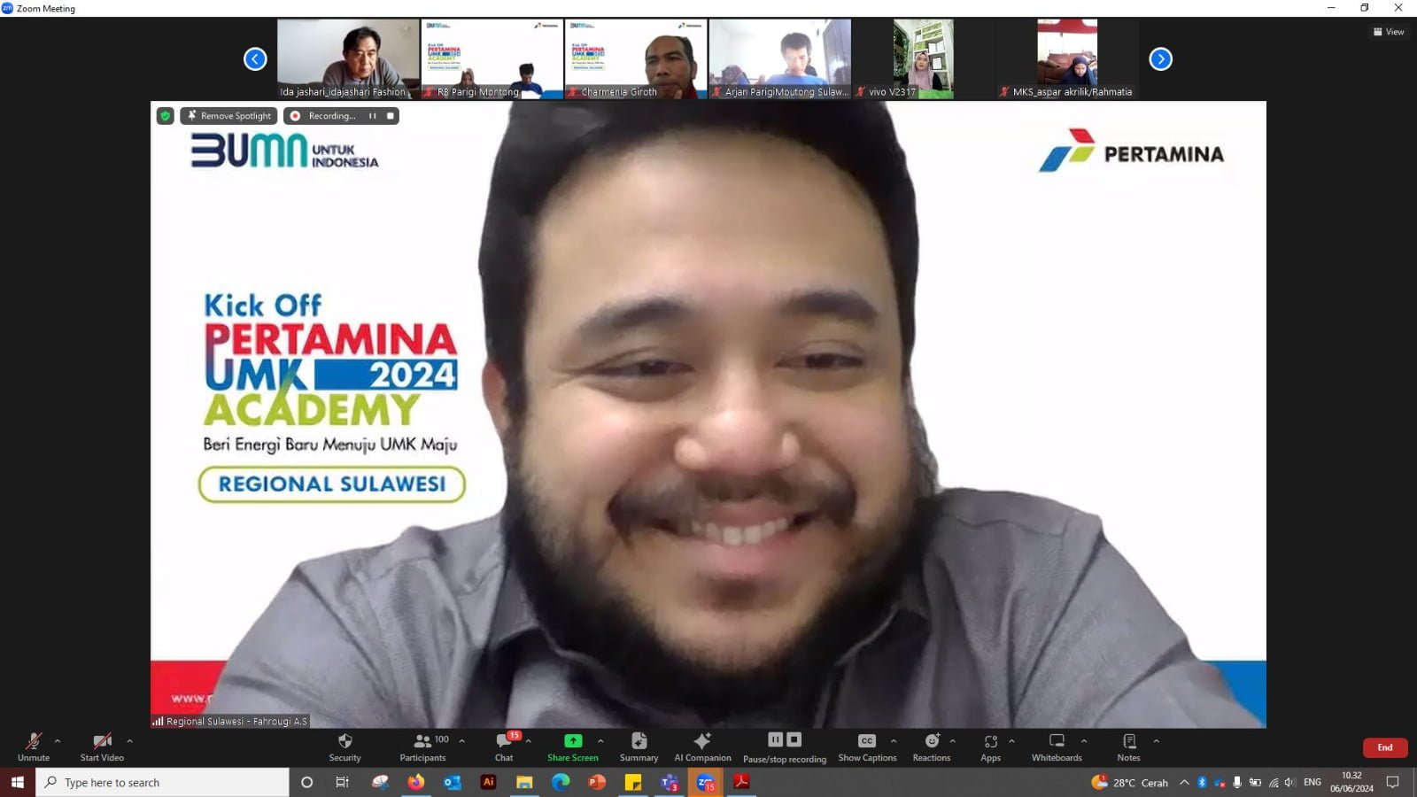 BERITAINEWS, Makassar – PT Pertamina (Persero) melalui PT Pertamina Patra Niaga Regional Sulawesi bersama Rumah BUMN Pertamina di Sulawesi melakukan kick off pelaksanaan kegiatan UMK Academy Pertamina Tahun 2024 skala Regional Sulawesi secara daring pada Kamis (6/6/24).