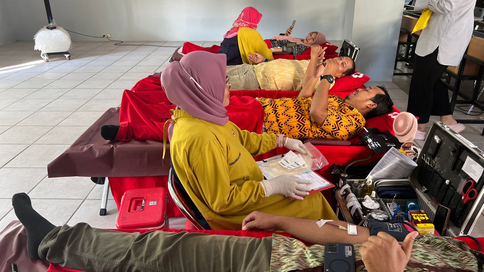 Selain donor darah, panitia juga menyediakan layanan cek kesehatan gratis, meliputi pemeriksaan gula darah, kolesterol, dan asam urat.