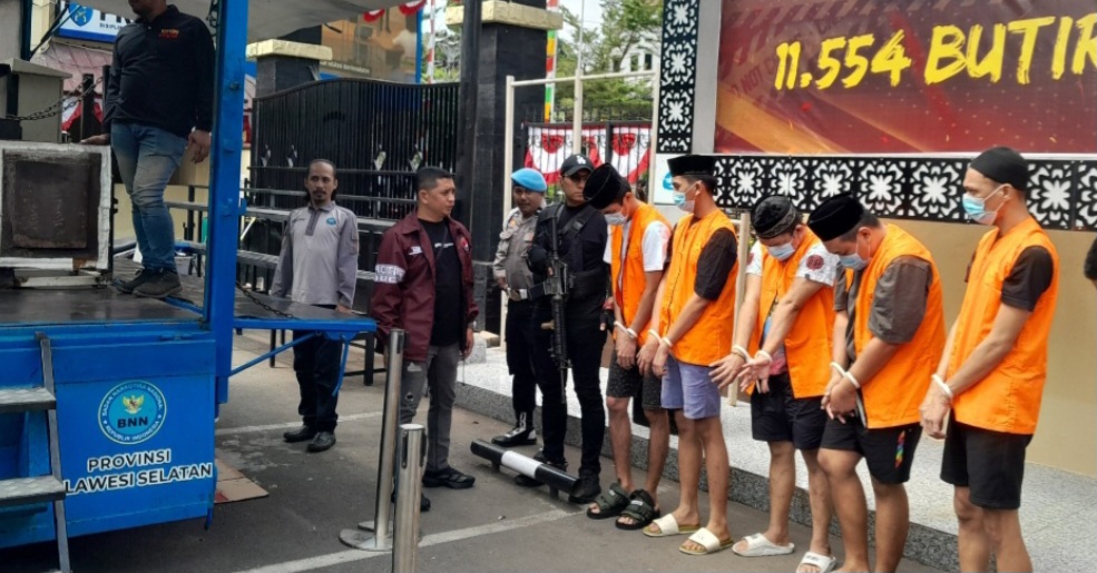 Barang bukti ini merupakan hasil pengungkapan kasus yang berhasil mengamankan lima orang tersangka yang diduga kuat merupakan bandar jaringan internasional dari Cina dan Malaysia, “kata kapolrestabes Makassar Kombes Pol Arya Perdana.