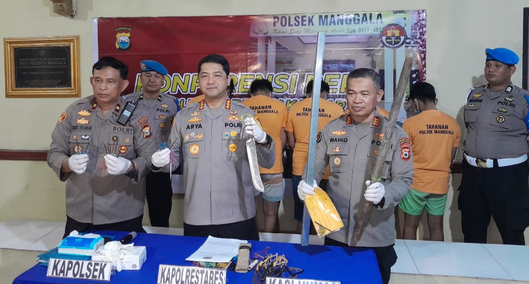 Tim gabungan Resmob Polsek Manggala dan Polsek Panakkukang bergerak cepat melakukan penyisiran di lokasi kejadian. Dari hasil operasi, polisi mengamankan berbagai barang bukti berupa busur, anak panah, balok besi, dan sepeda motor yang digunakan pelaku saat tawuran.