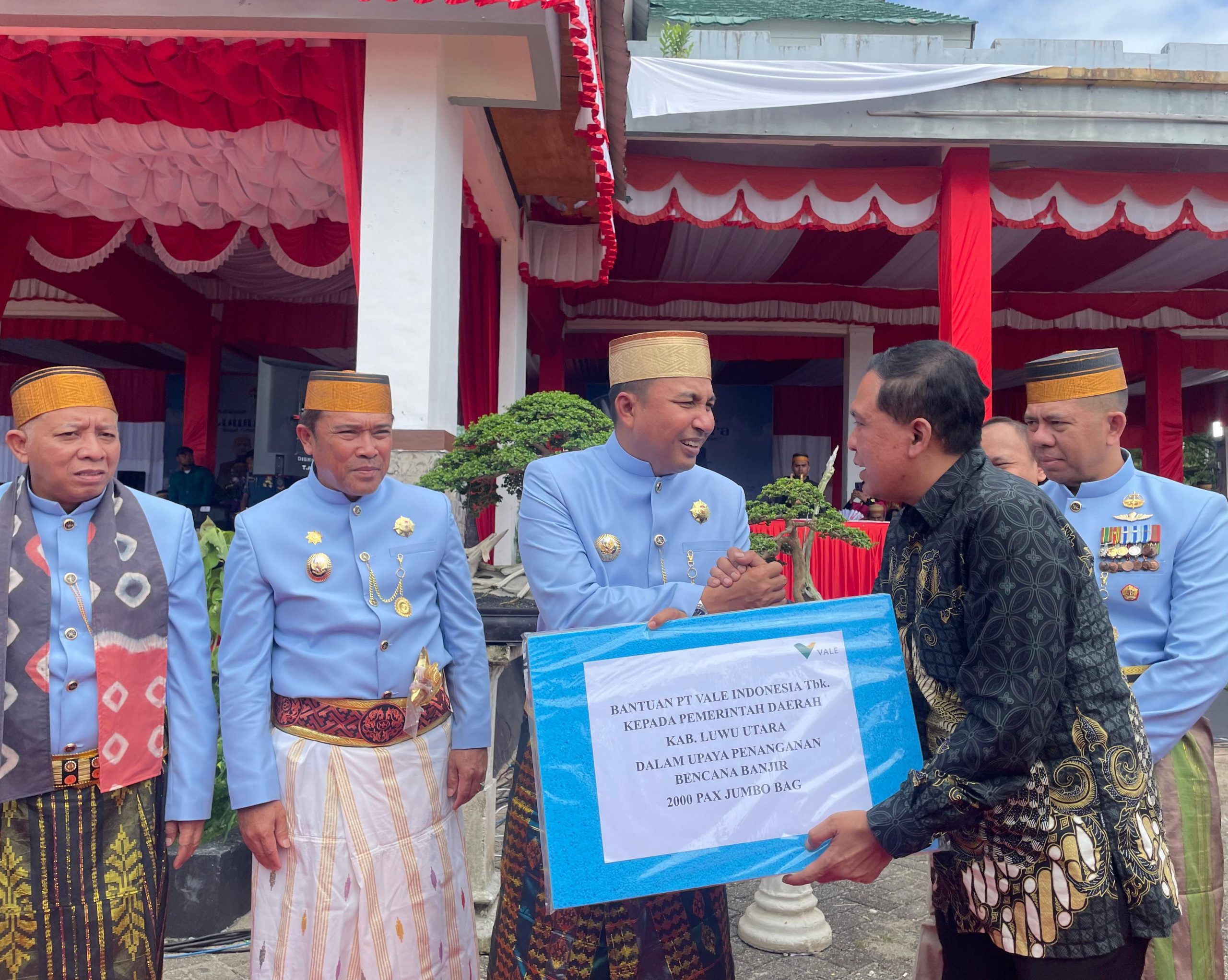 BERITAINEWS, MASAMBA – Perusahaan nikel berkelanjutan, PT Vale Indonesia Tbk (PT Vale), anggota dari Mining Industry Indonesia (MIND ID), kembali menunjukkan komitmennya dalam menciptakan dampak berkelanjutan bagi masyarakat, lingkungan, dan wilayah sekitar operasionalnya maupun diluar operasionalnya. Dalam peringatan Hari Jadi ke-26 Kabupaten Luwu Utara, PT Vale menyerahkan 2.000 jumbo bag berkapasitas 1 ton untuk mendukung upaya mitigasi bencana banjir yang kerap mengancam masyarakat akibat curah hujan ekstrem.