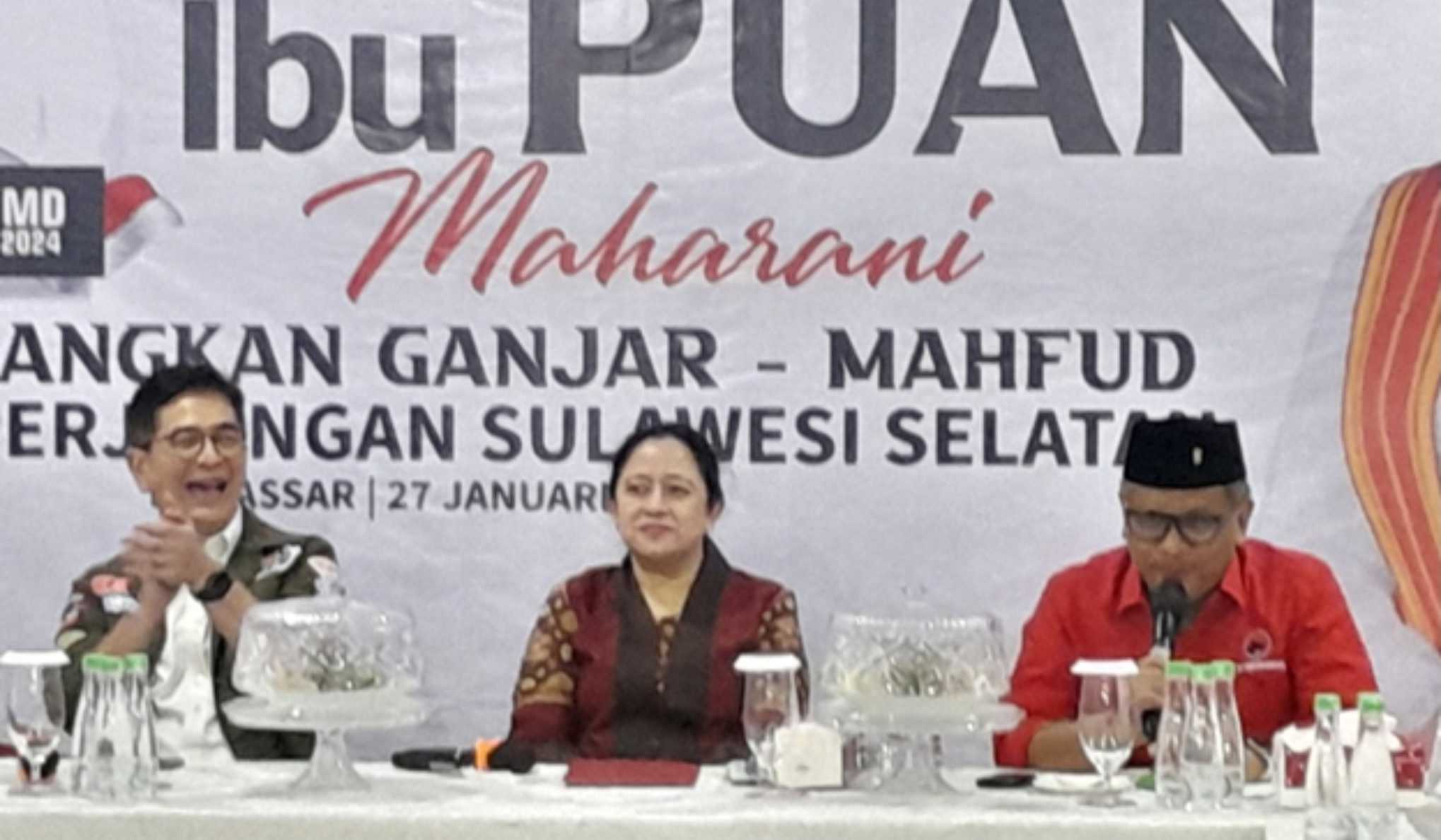 Kedatangan Puan Maharani didampingi Sekjen DPP Partai Demokrasi Indonesia Perjuangan Hasto Kristianto dan Ketua TPN Ganjar-Mahfud Sabtu, 27 Januari 2024.