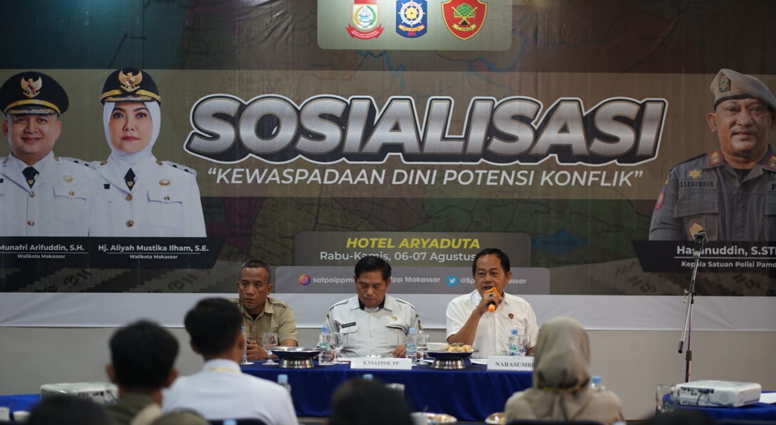 BERITAINEWS MAKASSAR — Satuan Polisi Pamong Praja (Satpol PP) Kota Makassar, melalui Bidang Pembinaan Masyarakat (Binmas), menggelar kegiatan Sosialisasi Kewaspadaan Dini Potensi Konflik. Acara penting ini dilaksanakan pada Rabu, 6 Agustus 2025, bertempat di Hotel Aryaduta, Kecamatan Ujung Pandang, dan bertujuan untuk meningkatkan kesiapsiagaan masyarakat dalam mencegah potensi konflik sosial.