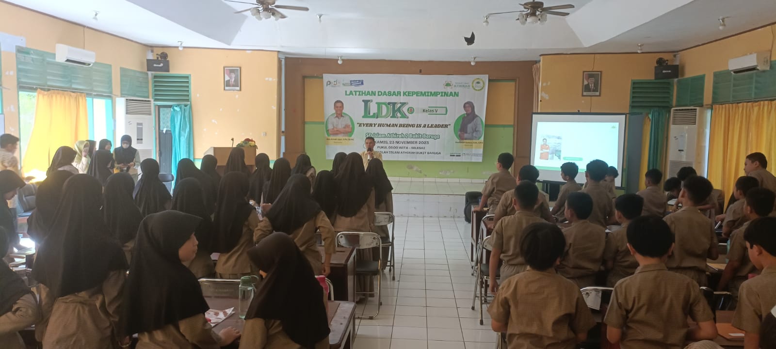 BERITAINEWS, Makassar – SD Islam Athirah 2 Makassar menggelar Latihan Kepemimpinan Dasar (LDK) untuk calon pengurus OPDIS (Organisasi Peserta Didik Intra Sekolah) pada Kamis (24/11/2023) di Aula LEC Athirah Baruga pada pukul 08.00-12.00 Wita. Kegiatan ini diikuti seluruh siswa kelas 5 yang berjumlah 68 orang dengan materi Kepemimpinan dan Publik Speaking.