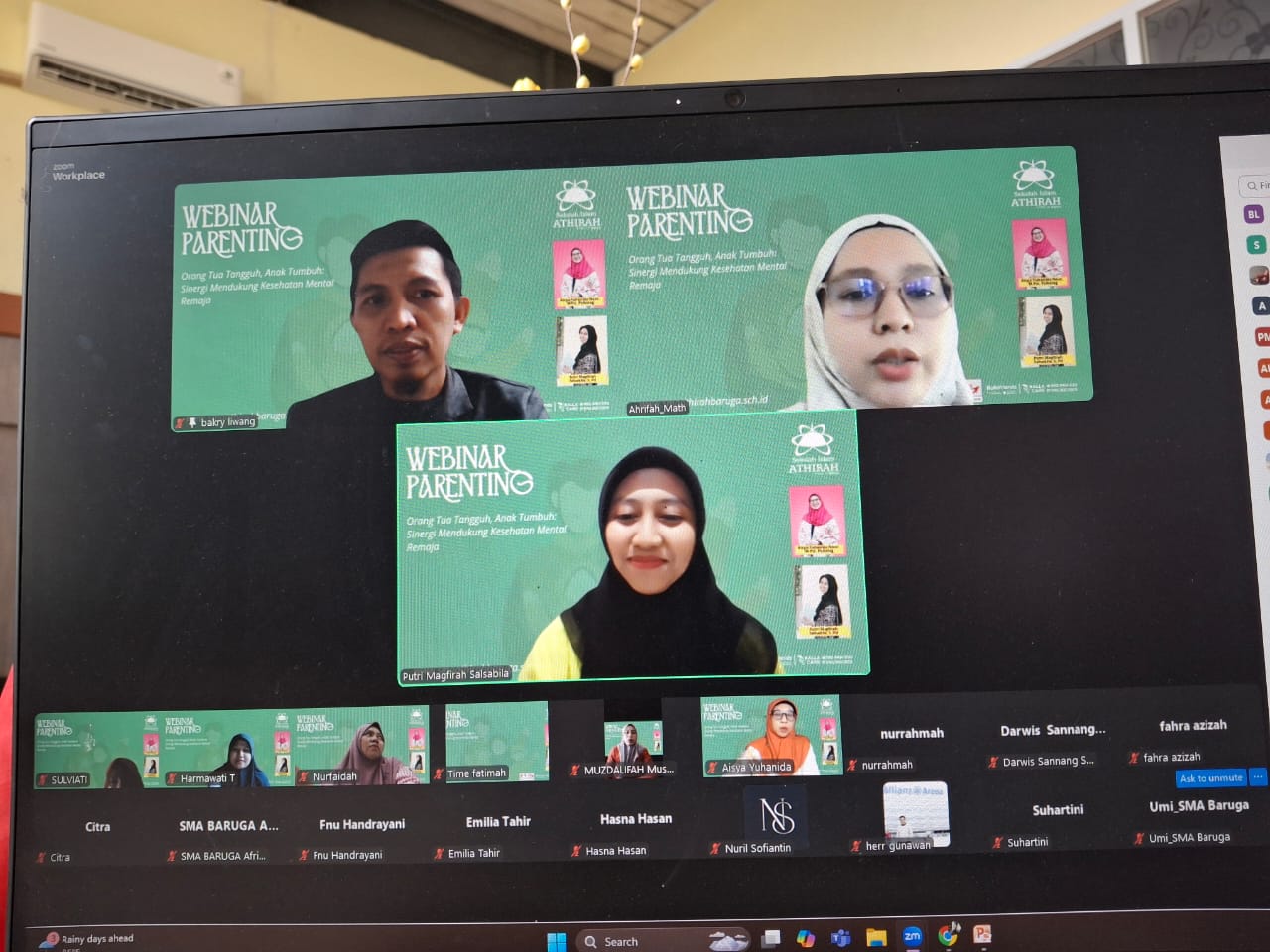BERITAINEWS, Makassar – SMA Islam Athirah Bukit Baruga menggelar kegiatan Webinar Parenting bertajuk “Orang Tua Tangguh, Anak Tumbuh: Sinergi Mendukung Kesehatan Mental Remaja” secara daring melalui platform Zoom pada Kamis, (29/5/2025). Kegiatan ini merupakan program awal yang dihadirkan oleh pihak sekolah untuk menyambut sekitar 150 orang tua calon siswa baru.