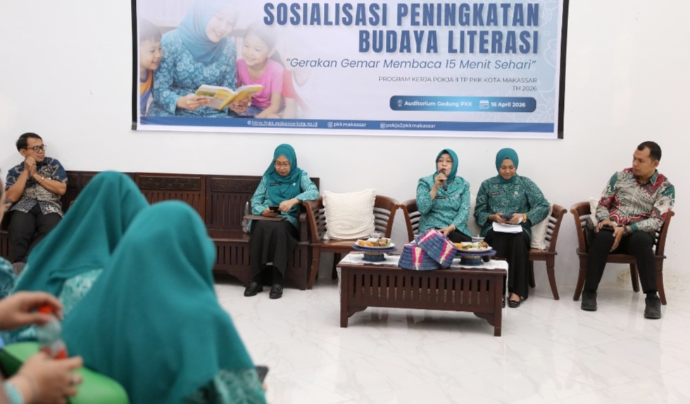 BERITAINEWS MAKASSAR — Tim Penggerak (TP) PKK Kota Makassar menggelar sosialisasi peningkatan budaya literasi bertajuk Gerakan Gemar Membaca 15 Menit Sehari di Auditorium Gedung PKK Kota Makassar, Kamis (16/4/2026).